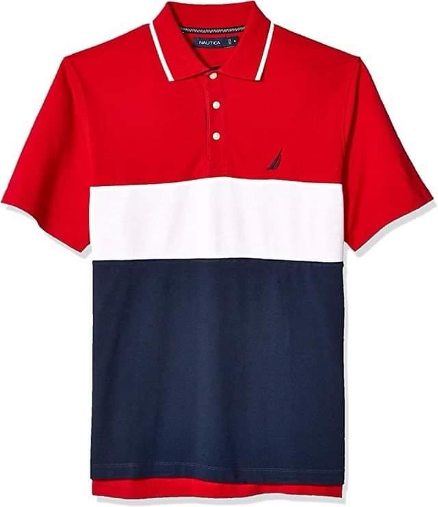Nautica Men’s Short Sleeve 100% Cotton Pique Color Block Polo Shirt